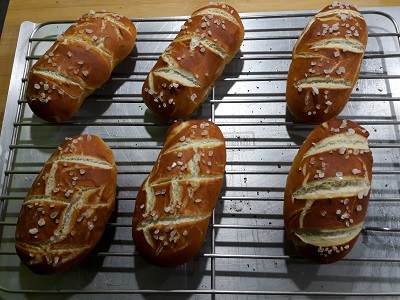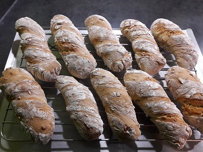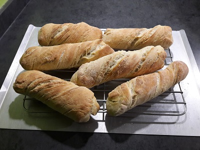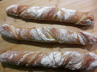Gedrehte Baguettes als Brötchen oder Baguettestang
