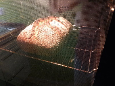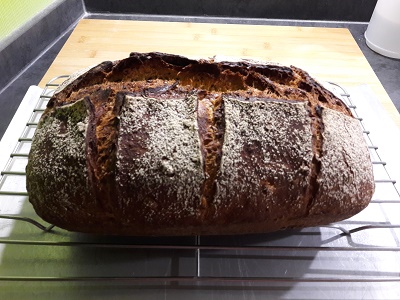 Abschließend das fertige Brot auf einem weiteren Gitterrost außerhalb des Ofens ablegen, nochmal mit etwas Wasser besprühen und mit einem Tuch bedeckt abkühlen lassen.