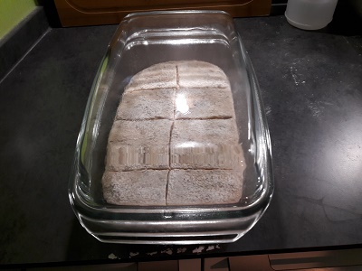 Anschließend mit ausreichend Mehl nochmal gut kneten, in Form bringen und mit dem Schluss nach unten in eine vorher gefettete Glasform mit Deckel geben.