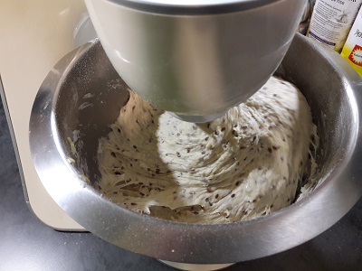 Das Mehl und die Körner schon mal in „der Gerät“ vermischen und dann mit den flüssigen Zutaten 7 – 10 Minuten gut durchkneten.