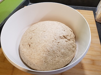 • die beiden Sorten Mehl abwiegen und in die Rührschüssel (from the machine) geben