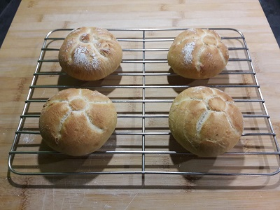 - die Teile zu runden Brötchen schleifen und dann ggf. zu ovale Brötchenformen rollen