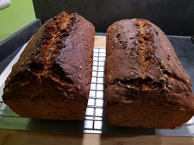 Abschließend das fertige Brot auf einem Gitterrost außerhalb des Ofens ablegen, nochmal mit etwas Wasser besprühen und mit einem Tuch bedeckt abkühlen lassen.