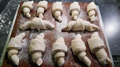 Die Hörnchen mit genügend Abstand auf ein mit Backpapier ausgelegtes Backblech geben und mit einem Tuch oder Frischhaltefolie abgedeckt über Nacht in den Kühlschrank stellen.