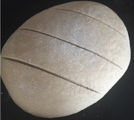 Den Ofen auf 250 Grad Ober-/Unterhitze vorheizen, den Teig einschneiden und bei fallender Temperatur backen, dabei am Anfang etwas Wasser in den Garraum sprühen!